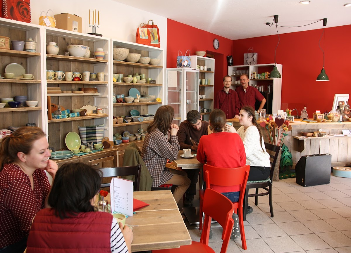 Whether you're on your lunch break like Dieter, who loves to enjoy a “Arbeitspausenkaffee” (work break coffee), or looking for a tranquil corner to unwind, Goldbach Werkstattladen & Café promises a refreshing respite. You can even indulge in a slice of self-made cake while discovering exquisite local products that make perfect souvenirs or gifts.